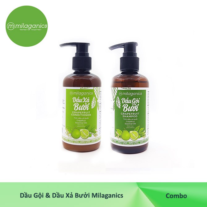 Bộ Dầu Gội và Dầu Xả Bưởi ngăn ngừa rụng tóc, nuôi dưỡng và Kích Thích Mọc Tóc Milaganics (200ml/ chai)
