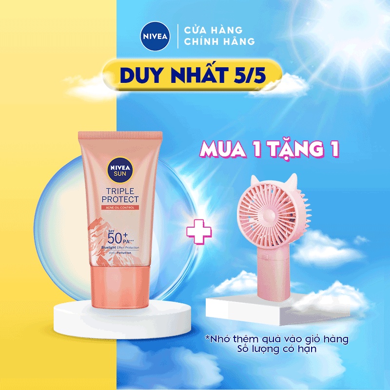 [TẶNG QUẠT MINI] Bộ Kem Chống Nắng Dưỡng Da Kiểm Soát Nhờn Mụn NIVEA Acne Oil Control SPF50+ PA+++ - TẶNG KÈM QUẠT MINI free ship